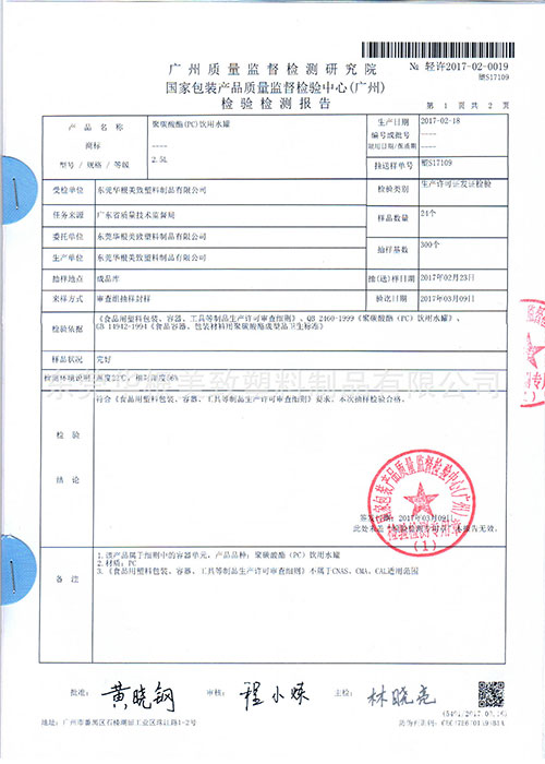 • 產品檢測報告證書